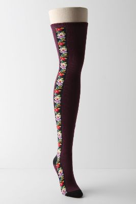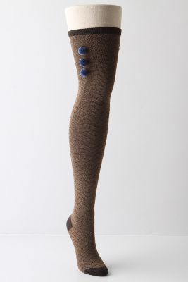 Next, I went across the street to Anthropologie. They were restyling the store, which was fascinating. Their displays are always so fabulous, so the store looked quite naked with everything pulled off the walls. After looking longingly at all of the gorgeous clothes and home decor, I focused in on a basket of tights on sale, and bought a pair in my favorite shade of peacock blue, the exact color of the lining of my skirt! Above are some of the other socks I was admiring. Those pom poms just kill me!